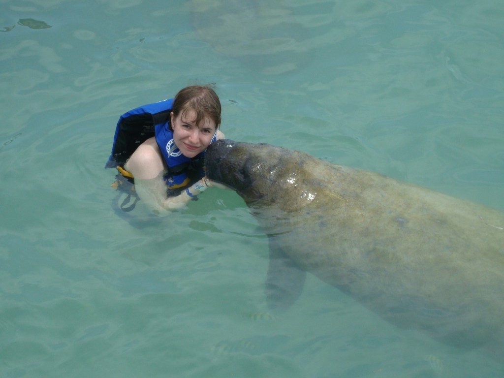 I notice that, in another pool, two beautiful, rare manatees, or “sea cows”, swim round and round in circles in their 40 square metres of water. Earlier I saw them too “kiss” tourists in turn in return for fish. Having encountered manatees in the wild, I know enough to be sure that manatees are naturally shy animals and enforced close contact with humans daily is surely something they do not relish. Alla Azovtseva, a Russian dolphin trainer of 30 years wrote: “I would compare the Dolphin situation here with making a physicist sweep the street. When they are not engaged in performance or training, they just hang in the water facing down. It’s the deepest depression.” Countless other now ex-sea mammal trainers have voiced similar opinions in recent years.